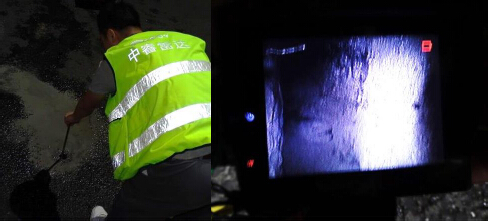 對探測發現的一處大型空洞災害點進行釬探并采用電子內窺鏡檢查地下空洞內部情況。